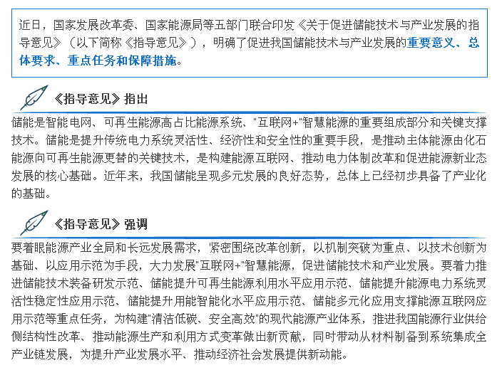 國家發(fā)展改革委、國家能源局等五部門聯(lián)合印發(fā)《關(guān)于促進儲能技術(shù)與產(chǎn)業(yè)發(fā)展的指導(dǎo)意見》