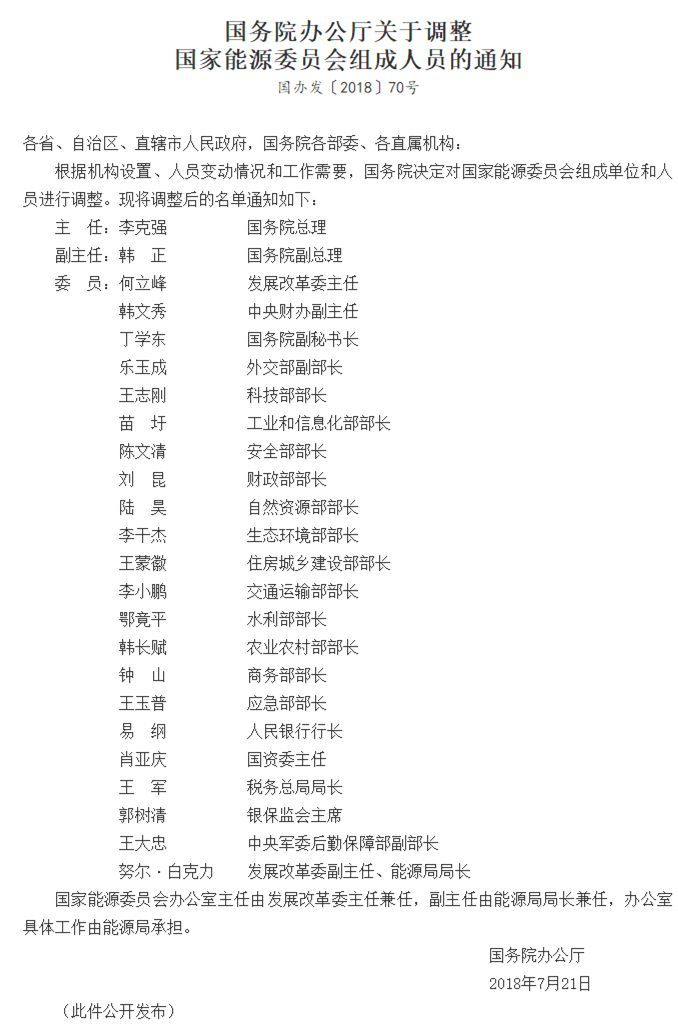 ?中國最高規格能源管理機構——國家能源委員會迎來自2010年成立以來的第四次內部調整。此番調整后,國家能源委員會由24人組成,國務院總理李克強擔任委員會主任,國務院副總理韓正擔任副主任,另有來自國務院各部委、直屬機構、中央財辦、中央軍委等的22名委員。