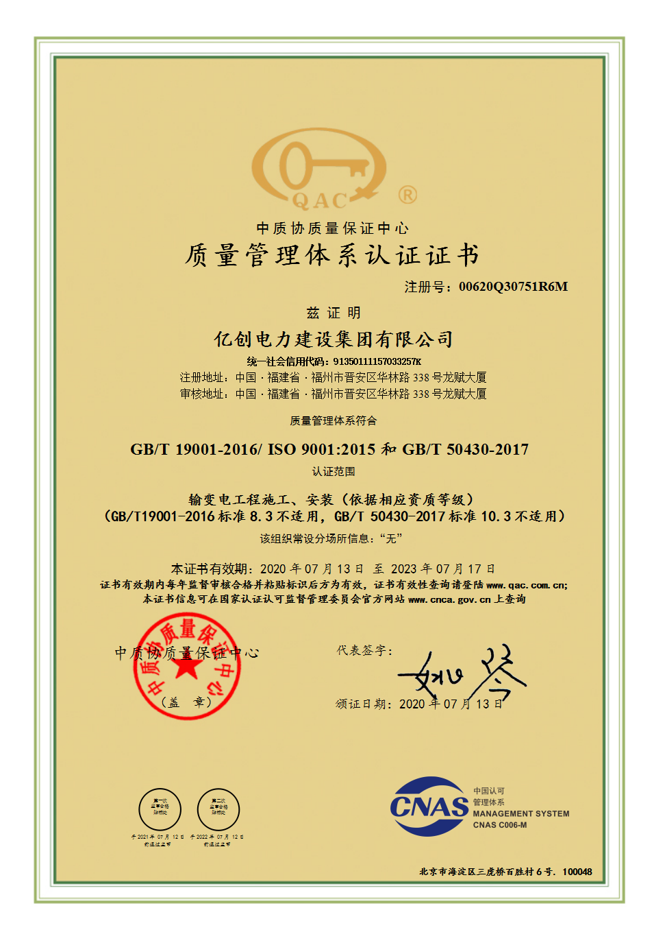 質量管理體系認證證書